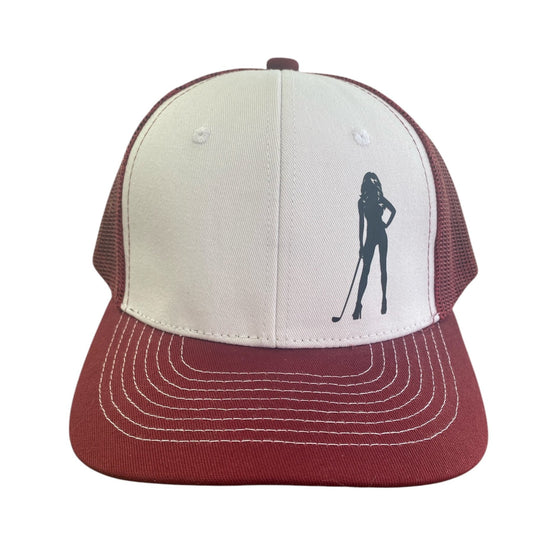 Golf Babe Trucker Hat (Dark Red/White)
